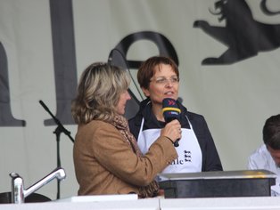 Trotz Wind und Regen strömten zahlreiche Gäste zur SWR1-Pfännle Veranstaltung auf den Marktplatz des ALB-GOLD Kundenzentrums. Viel Infrastruktur musste für die große Bühne geschaffen werden, damit beim Schaukochen von Irmgard Freidler, Dieter Wetzel, Michael Kost und weiteren Genießern Saibling mit Graupenrisotto gekocht werden konnte. Acht regionale Gastronomen verwöhnten die Gäste mit raffinierten Spezialitäten – ein echtes Fest für alle, die dem nicht gerade sommerlichen Wetter mit Appetit trotzten.